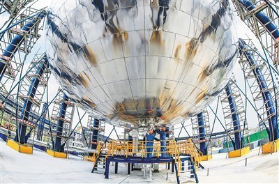 石化第二化肥厂气体联合车间员工正在调控4000立方米二氧化碳球罐达到最佳工作状态。 曹业琦摄