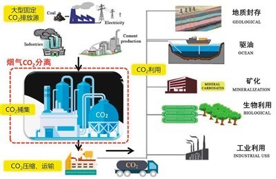 二氧化碳捕集、利用与封存过程示意图。 图表来源于网络