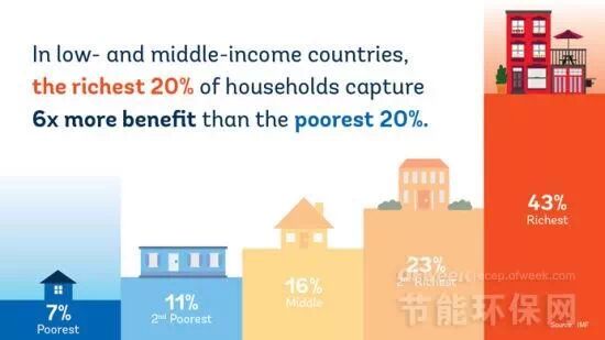 研究表明人口中最富有的20%从化石燃料补贴中获得的收益为最贫穷的20%人口的6倍。取消燃料补贴节约下来的资金可以用于重新投资在最需要的地方,包括卫生、教育以及惠及穷人的其它领域。