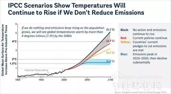 气候科学家预测,如果我们不控制碳排放,到本世纪80年代气温上升的幅度可能达到4摄氏度。最后一个冰河时期的平均气温比今天低4.5至7摄氏度,而且气温上升是在数千年间?逐渐发生的。而我们现在所谈的是在未来很短一段时间内出现那种气温变化,地球上的生命将会发生根本性的变化。